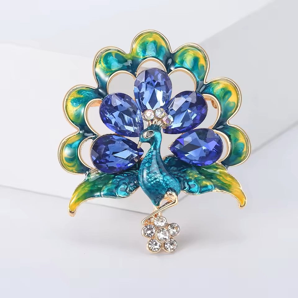 Diese Pfauen Brosche mit Schmucksteinen vereint Eleganz und Ausdruckskraft in einem außergewöhnlichen Design. Gefertigt aus hochwertigem Metall mit Zinklegierung und verziert mit funkelnden Schmucksteinen, ist sie ein wunderschönes Accessoire, das jedes Outfit aufwertet.